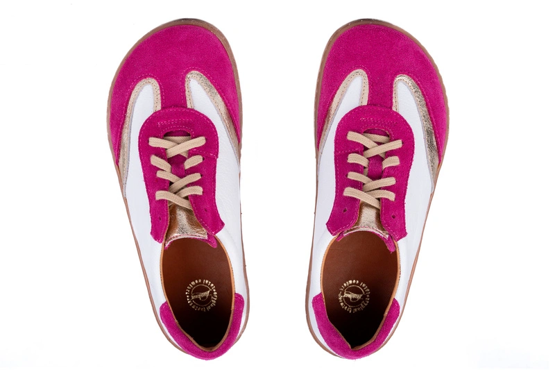 Konstrukcja barefoot została opracowana w taki sposób, aby odzwierciedlać naturalny kształt kobiecej stopy. Szeroki przód pozwala palcom swobodnie się układać, bez ściskania i ograniczeń charakterystycznych dla klasycznego obuwia. Dzięki temu stopa pracuje w sposób naturalny, co przekłada się na lepszą stabilność, większy komfort oraz uczucie lekkości podczas chodzenia. To idealne rozwiązanie zarówno na co dzień, jak i na długie spacery czy intensywny dzień poza domem.
