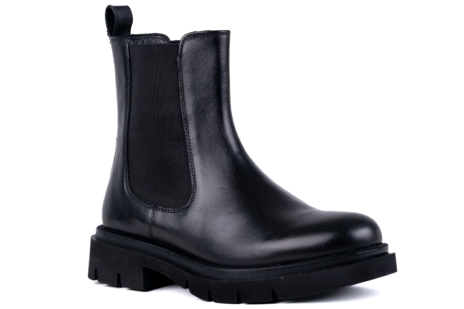 Botki osadzone są na masywniejszej podeszwie typu traktor, która nadaje im nowoczesnego, miejskiego charakteru. Stabilny obcas o wysokości 2,5 cm delikatnie podnosi sylwetkę, nie rezygnując przy tym z wygody. To buty, które sprawdzą się zarówno w dynamicznym rytmie dnia, jak i podczas długich spacerów, gwarantując pewność kroku na różnych nawierzchniach.