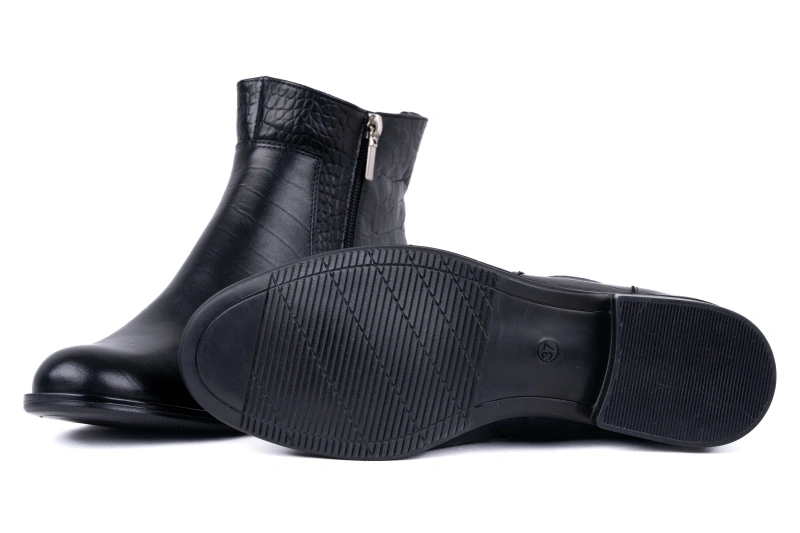 Botki damskie z czarnej skóry licowej tłoczonej – elegancja i komfort na każdą okazję