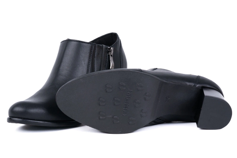• buty uszyte z naturalnej skóry licowej, dzięki czemu są lekkie, miękkie oraz trwałe. Ponadczasowy kolor i krój botków sprawią, że nasze stylizację będą pełne szyku i elegancji