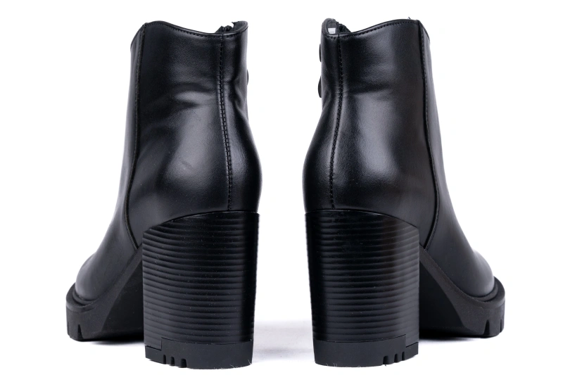 Wnętrze botków zostało ocieplone miękkim polarem, który daje uczucie przyjemnego otulenia stopy. To rozwiązanie gwarantuje komfort cieplny podczas spacerów w chłodne dni, jednocześnie nie obciążając obuwia. Stabilny obcas o wysokości 8 cm został dodatkowo ozdobnie tłoczony, co podkreśla elegancki charakter modelu i sprawia, że wyróżnia się on na tle innych propozycji. Botki osadzono na podsuwce o wysokości 2 cm, dzięki której stopa jest dobrze izolowana od podłoża, a drobne nierówności czy kamyki nie będą odczuwalne podczas chodzenia. To gwarancja, że wygoda idzie tu w parze z funkcjonalnością.