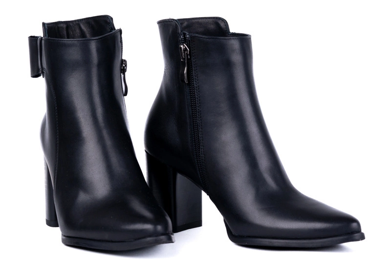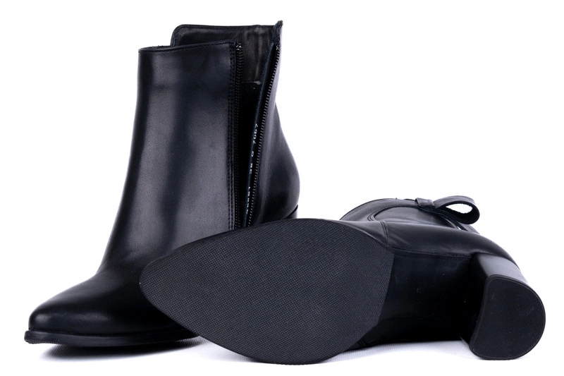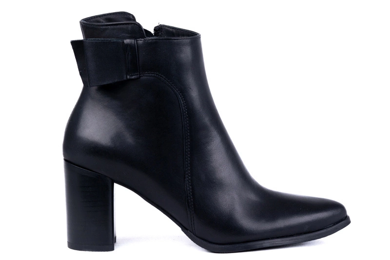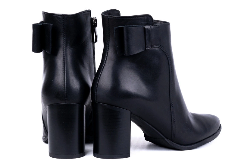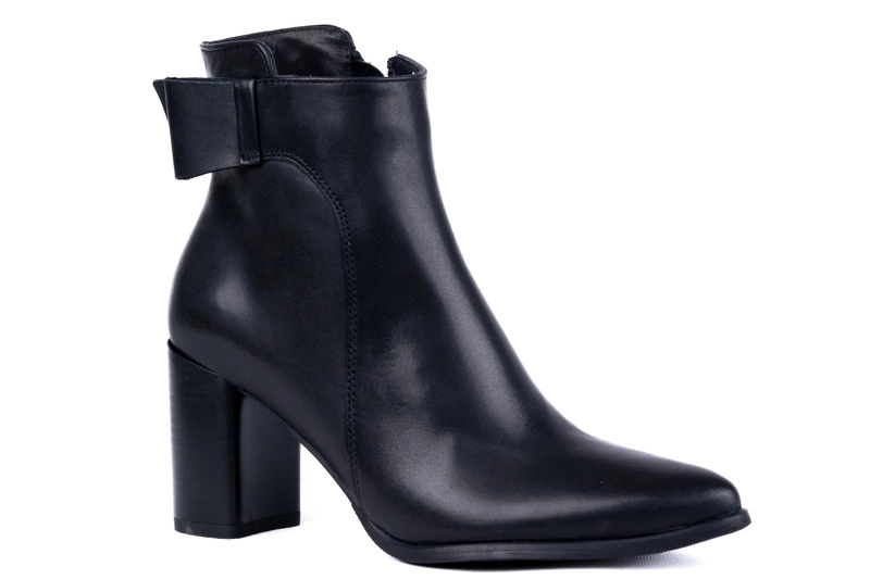 Obuwie zostało uszyte ze skóry naturalnej najwyższej jakości. Miękkie skóry użyte do produkcji idealnie dopasowują się do stopy, zapewniając wygodę i komfort przez cały dzień. Prosta cholewka o eleganckim kroju została wzbogacona subtelną ozdobą w postaci skóry ułożonej w kształt połowy kokardy przy górnej krawędzi. Ten detal nadaje botkom unikatowego charakteru, zachowując jednocześnie minimalistyczny styl. Wnętrze butów ocieplono miękkim polarem, który skutecznie chroni przed chłodem i sprawia, że botki świetnie nadają się na sezon jesienno-zimowy.