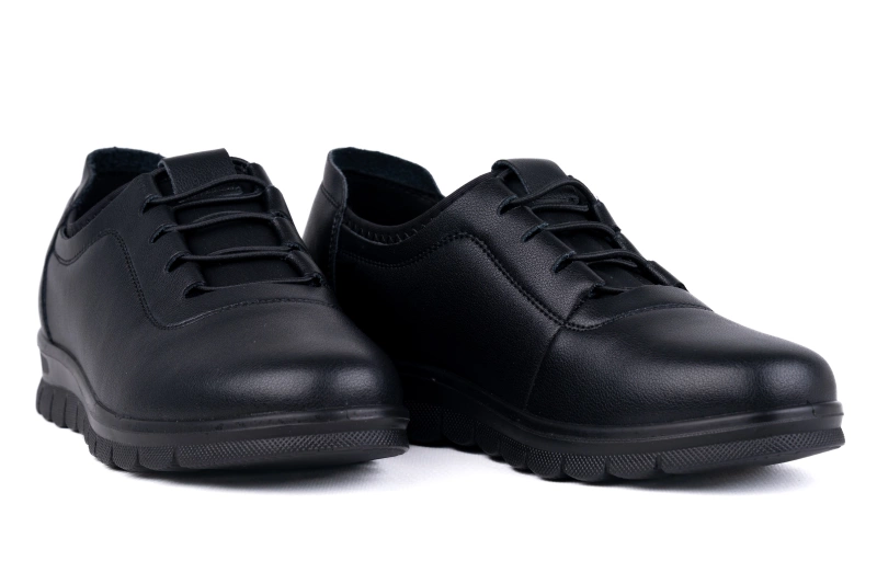 Buty zostały wyposażone w klasyczne sznurowanie, które pozwala idealnie dopasować obuwie do stopy. Dzięki prostemu krojowi i eleganckiej czerni, model jest niezwykle uniwersalny – z łatwością dopasujesz go zarówno do sportowych, jak i casualowych stylizacji. Klin dodaje lekkości, a przy tym zapewnia lepszą stabilność niż tradycyjna płaska podeszwa. To połączenie praktyczności i elegancji w najlepszym wydaniu.
