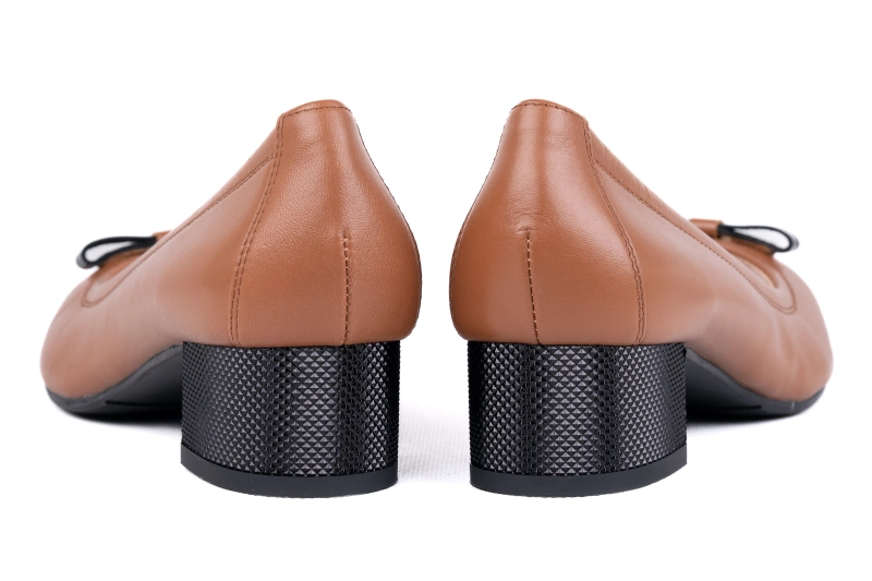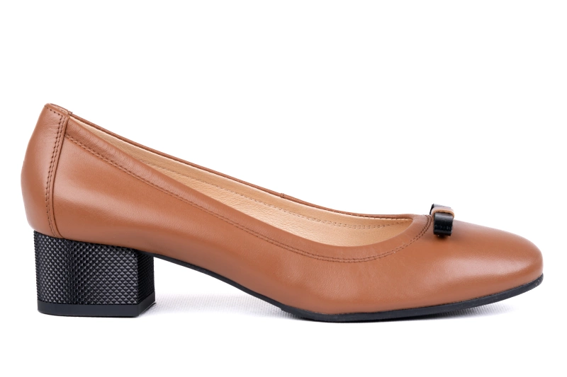 Buty zostały uszyte z miękkiej skóry naturalnej w klasycznym, brązowym kolorze. Skóra jest materiałem oddychającym, przyjaznym dla stopy i odpornym na codzienne użytkowanie. Dzięki starannemu wykonaniu oraz precyzyjnemu wykończeniu, czółenka charakteryzują się wysoką jakością, która wyróżnia markę Łukbut na tle innych producentów. Obcas został utrzymany w kontrastowej czerni, a jego subtelne zdobienie dodaje całości wyjątkowego charakteru. To zestawienie kolorów sprawia, że buty prezentują się elegancko i pasują do wielu stylizacji.