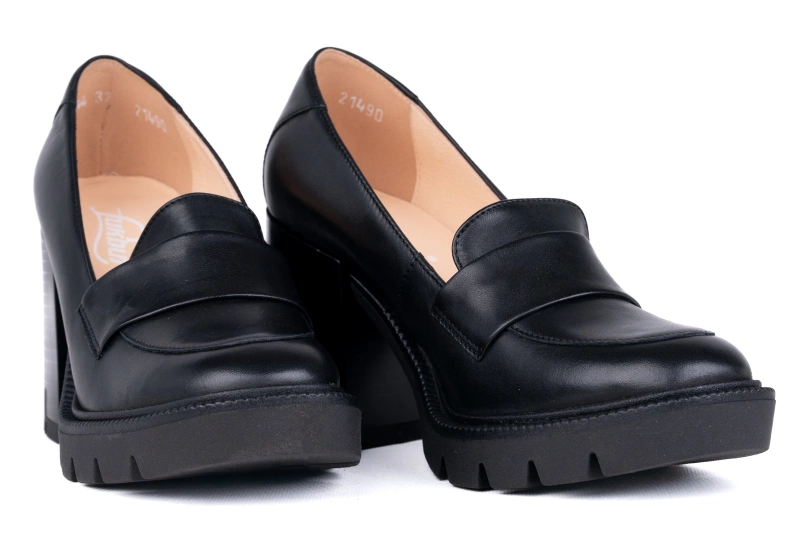 • Czółenka na prostym, dobrze wyprofilowanym obcasie