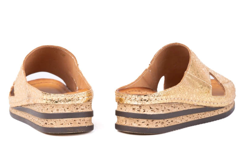 • podeszwa lekka z materiału imitującego korek, podeszwa szeroka, stabilna , grubsza  dzięki czemu nie odbija stóp