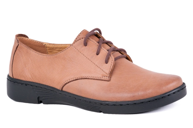 - Półbuty damskie renomowanej marki Łukbut Buty komfortowe skórzane oparte na czarnej podeszwie z lekkim klinem