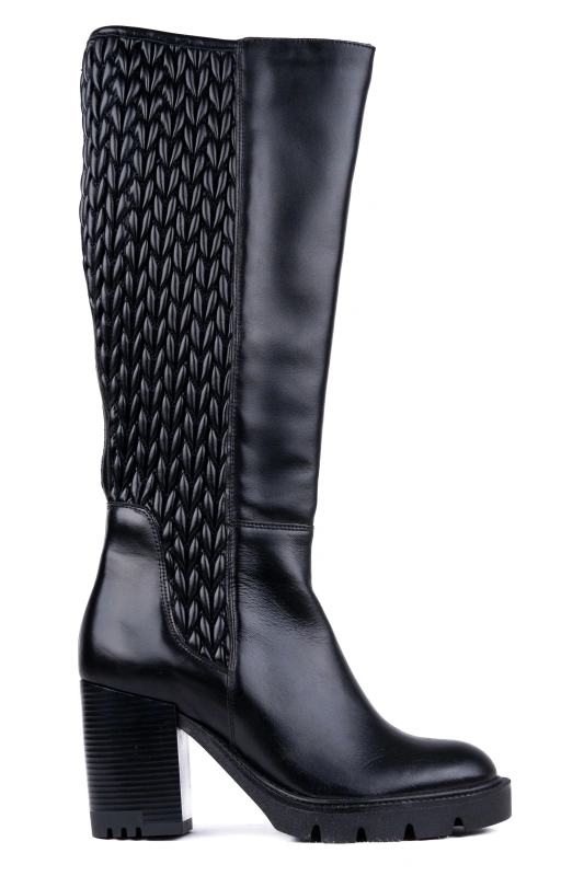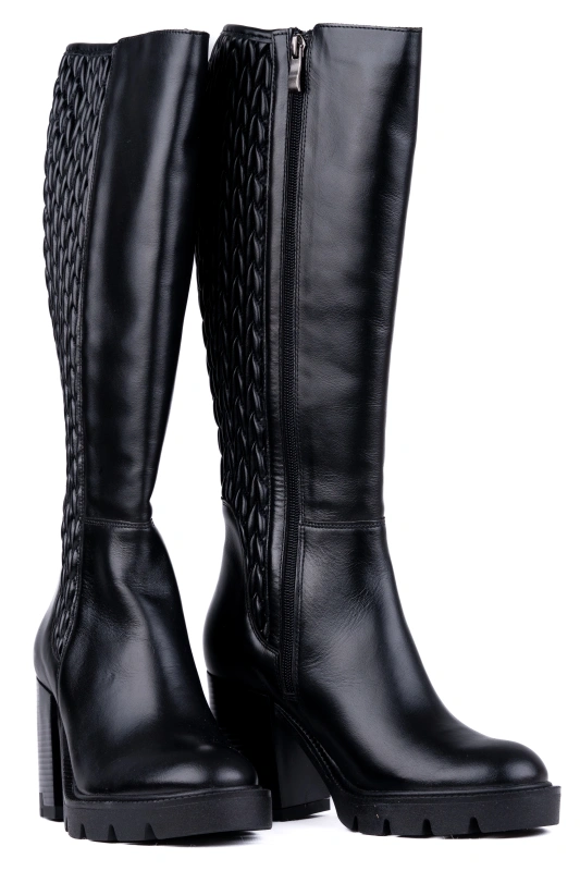 Kozaki damskie na słupku, wysokie do kolan, to model stworzony z myślą o kobietach ceniących komfort, wygodę i elegancję. Wykonane z wysokiej jakości skóry naturalnej, z tyłu wyposażone w prążkowaną, elastyczną wstawkę z gumy, która doskonale dopasowuje się do obwodu łydki. Taka konstrukcja zapewnia swobodę ruchu i komfort nawet przy długim noszeniu butów. To kozaki idealne na jesień i zimę, które świetnie komponują się z sukienkami, spódnicami czy eleganckimi płaszczami.