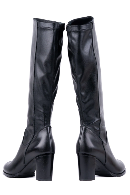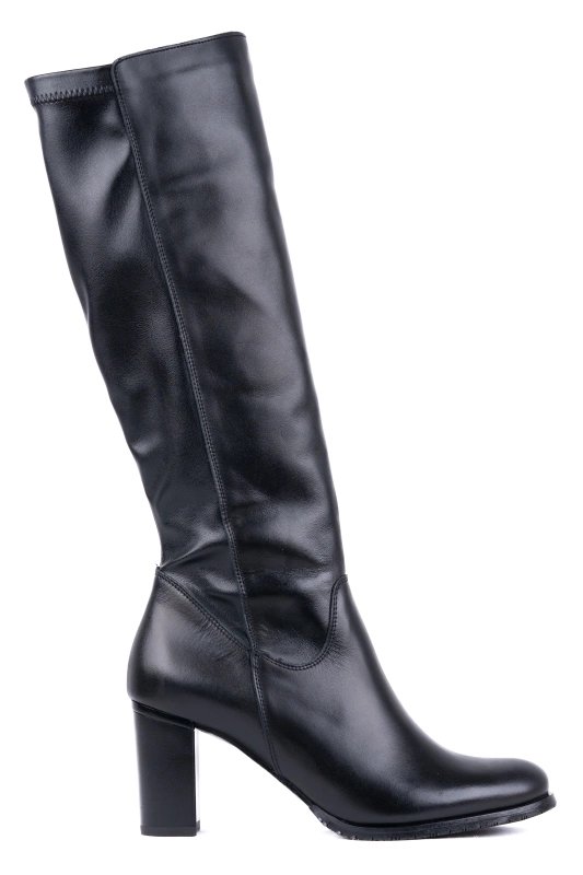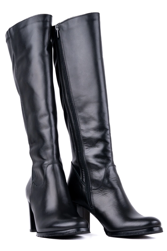 Eleganckie kozaki damskie to połączenie klasyki, kobiecości i najwyższej jakości wykonania. Uszyte ze skóry naturalnej, zachwycają piękną, smukłą linią oraz doskonale wyprofilowanym obcasem o wysokości 10,5 cm, który mimo swojej wysokości zapewnia komfort i stabilność podczas chodzenia. Dzięki podeszwie na podsuwce o wysokości około 2 cm, każdy krok jest lekki i sprężysty. Model wyróżnia się również tyłem cholewki wykonanym z elastycznej gumy w elegancki, tłoczony wzór, który dodaje całości charakteru i umożliwia idealne dopasowanie do nogi.