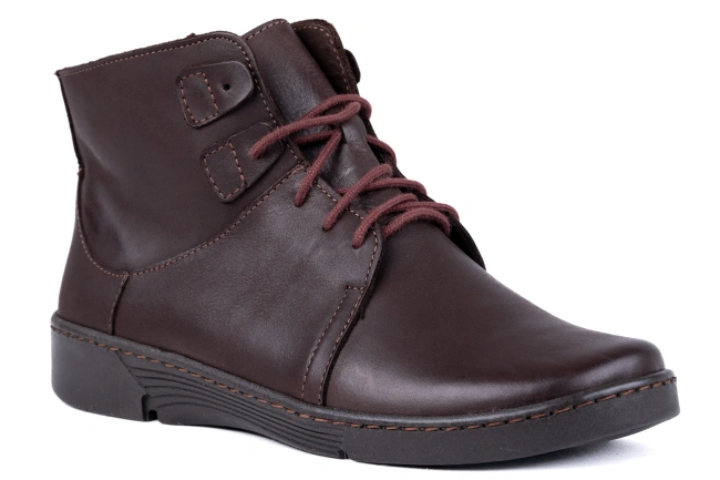 Lekkie skórzane trzewiki damskie,brązowe Łukbut 18160-3-Z-287