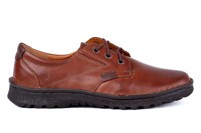 Brązowe półbuty męskie skórzane Łukbut – szeroka tęgość K, sznurowane, komfortowe