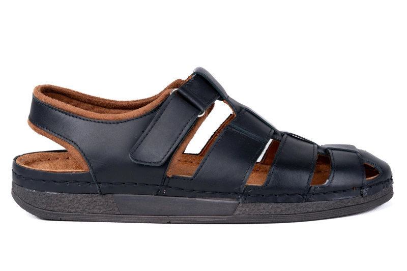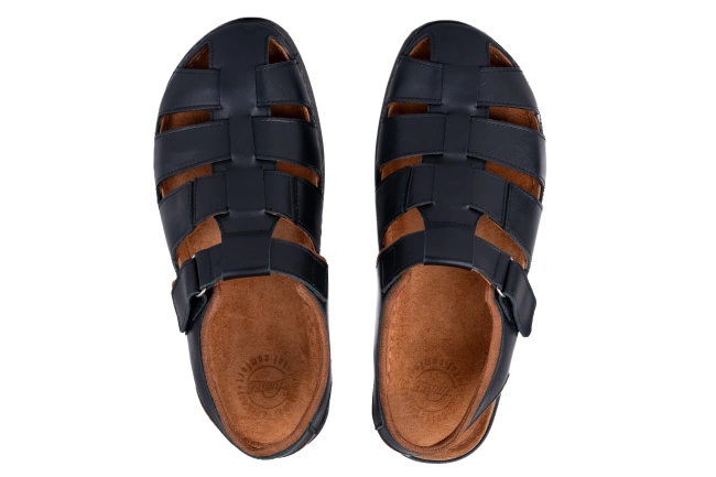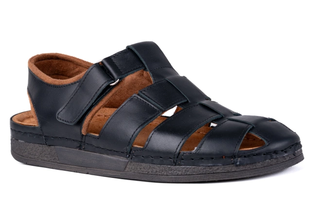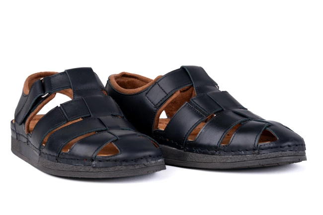 Męskie sandały skórzane Łukbut – zakryte palce, odkryta pięta, podeszwa Fusbet