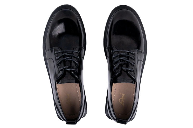 Lakierowana skóra nadaje półbutom elegancki połysk, jednocześnie pozostając miękka i przyjemna w dotyku. Wnętrze buta wyłożone jest naturalną skórą, co zapewnia komfort termiczny, oddychalność oraz idealne dopasowanie do kształtu stopy. Sznurowanie pozwala na precyzyjne dopasowanie tęgości buta, co zwiększa komfort podczas całodziennego użytkowania i sprawia, że są to półbuty idealne na wiosnę i jesień.