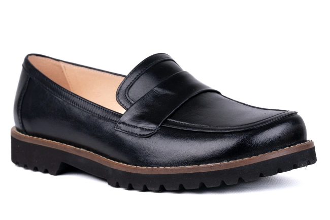 Stylowe mokasyny damskie z czarnej skóry licowej to propozycja dla kobiet, które cenią komfort, naturalność i klasykę w nowoczesnym wydaniu. Wykonane z miękkiej, elastycznej skóry naturalnej, doskonale dopasowują się do kształtu stopy, zapewniając swobodę ruchu i lekkość przy każdym kroku.
