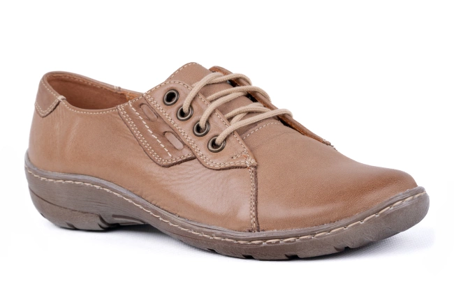 Lekkie brązowe półbuty damskie ze skóry naturalnej – Łukbut