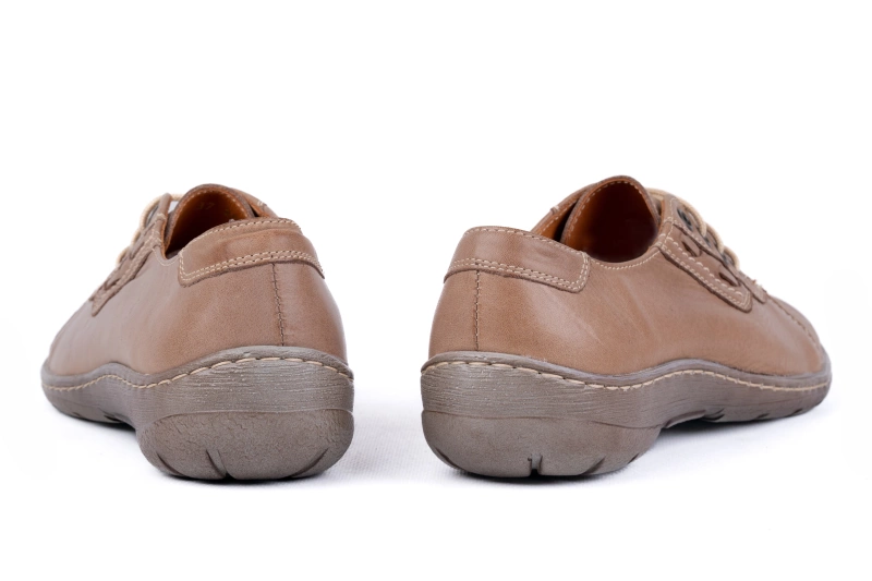Model wykonany jest z wyjątkowo miękkiej naturalnej skóry licowej, łatwej do pielęgnacji. Dzięki sznurowaniu możliwa jest regulacja tęgości, co ułatwia dopasowanie do stóp o różnych kształtach. Na wysokości haluksa nie ma szwów, co sprawia, że buty nie powodują ucisku i nadają się także dla osób z wrażliwymi stopami.
