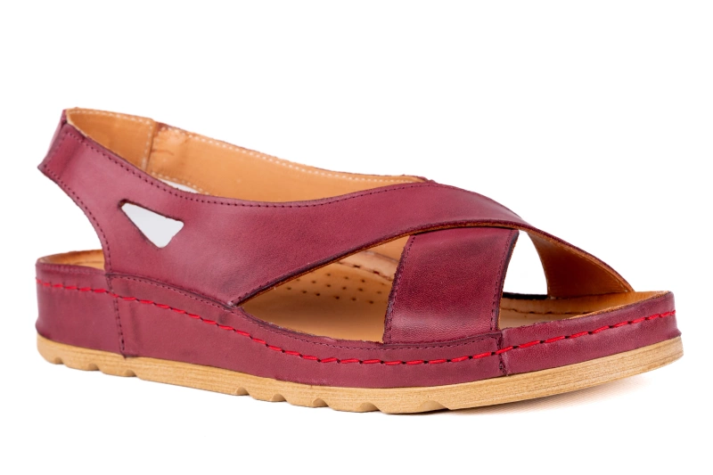 Skórzane sandały damskie Łukbut – elegancki bordowy kolor – komfort i styl na lato