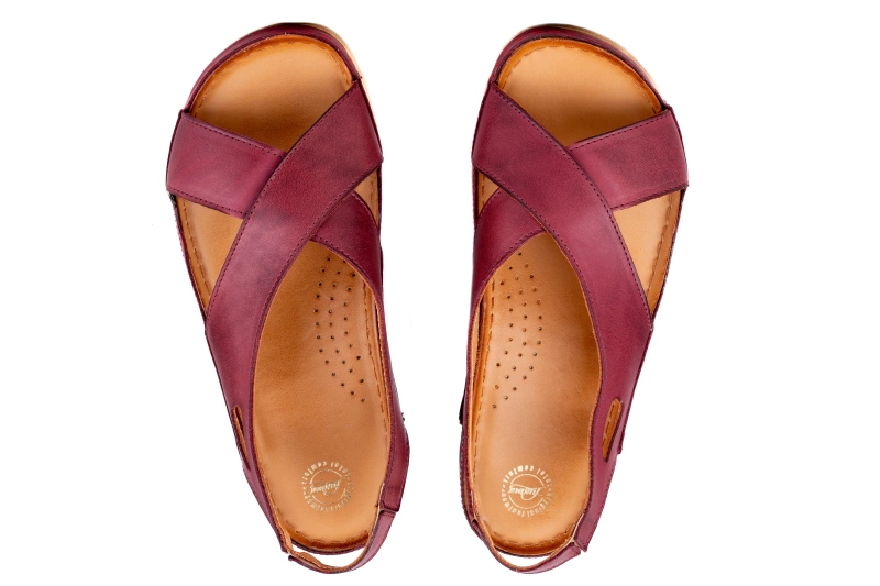 Szukasz sandałów, które łączą wygodę i kobiecy styl? Wybierz skórzane sandały damskie Łukbut w pięknym bordowym kolorze – to idealna propozycja na lato dla kobiet, które cenią sobie komfort, jakość i ponadczasowy wygląd.