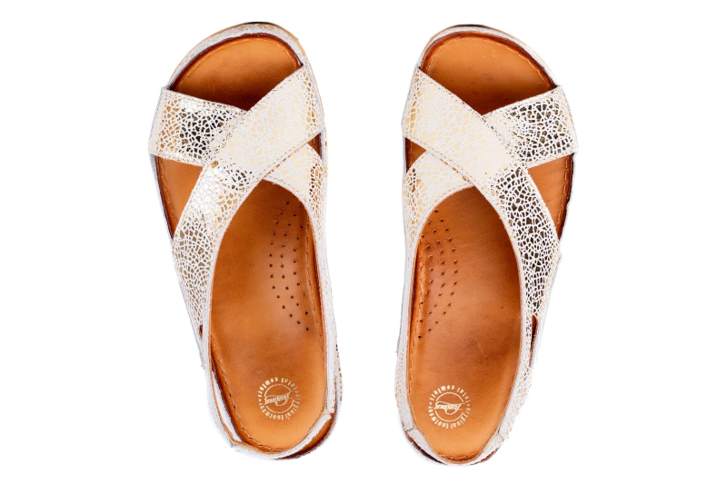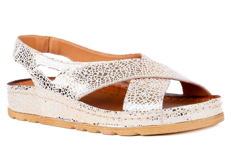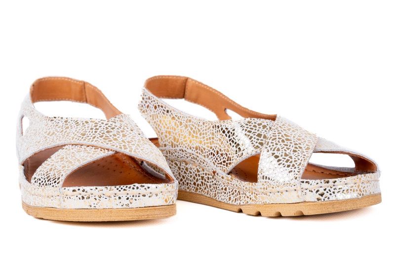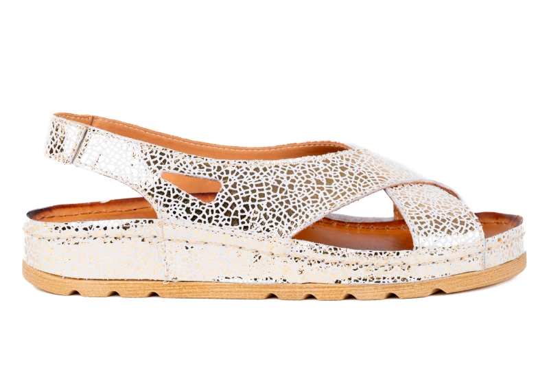 Szukasz sandałów, które przyciągają wzrok i jednocześnie zapewniają wyjątkowy komfort? Wybierz skórzane sandały damskie Łukbut w kolorze żywego złota z jasnym tłoczeniem – to połączenie luksusowego wyglądu z wygodą idealną na letnie dni.