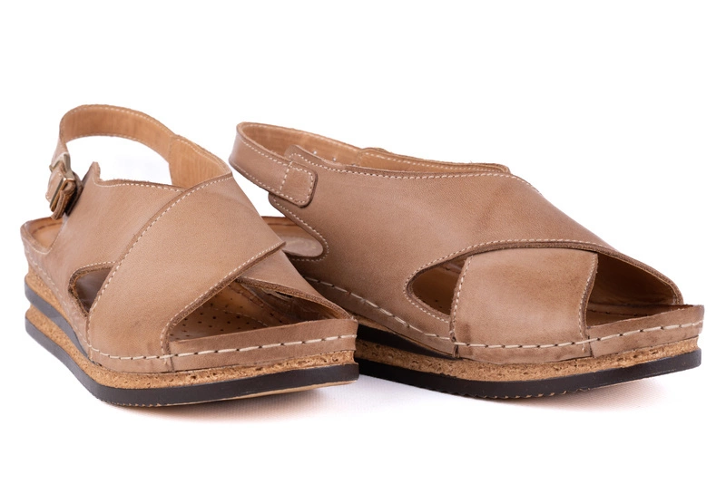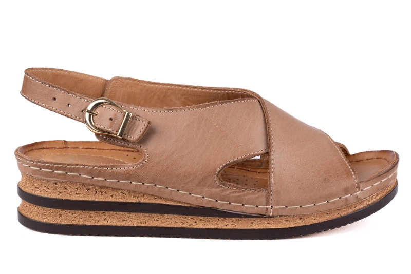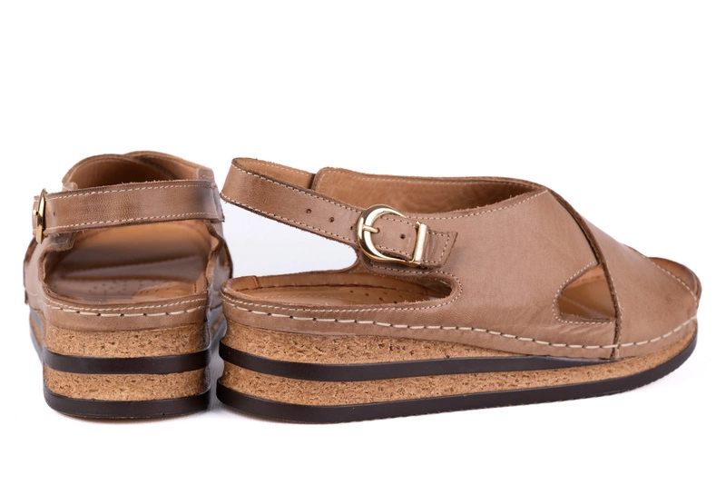 Sandały damskie na koturnie beżowe 16160-3-L-050