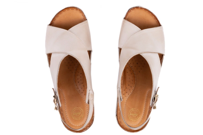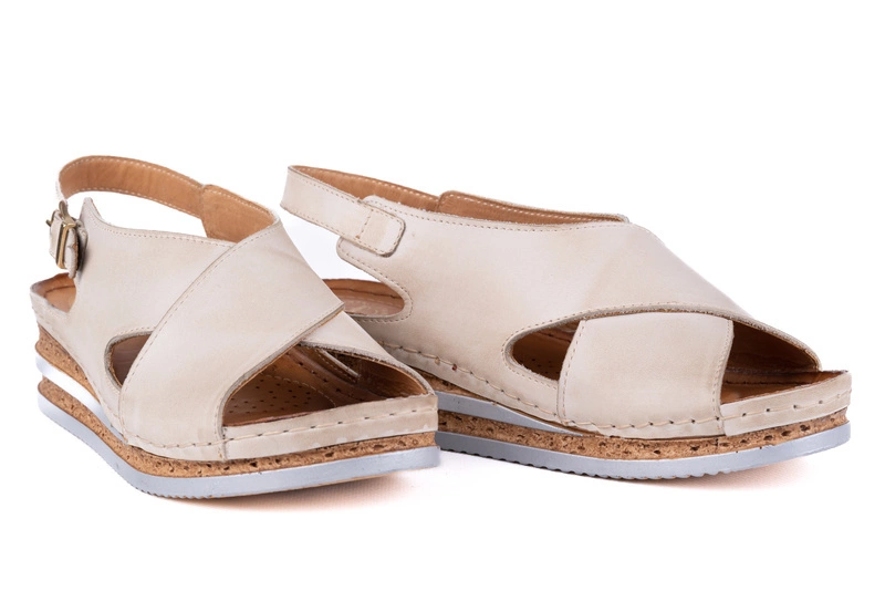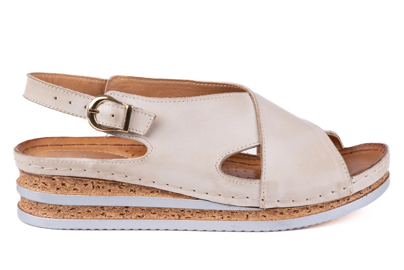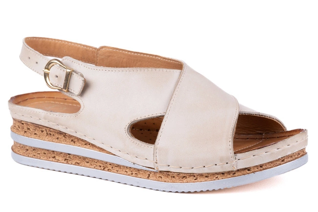Sandały damskie na koturnie kremowe 16160-3-L-264