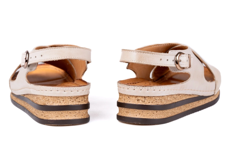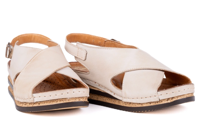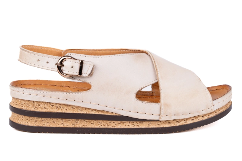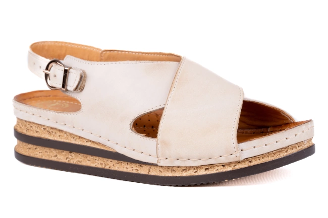 Sandały damskie na koturnie kremowe 16160-3-L-264