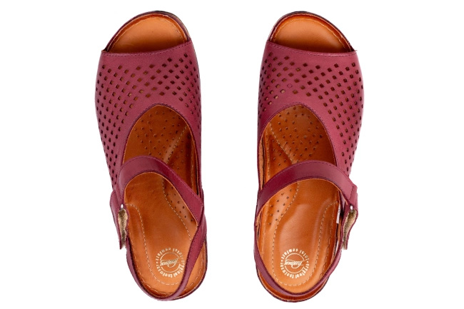 Model posiada szerszy, ozdobnie perforowany pasek (ażurowy), który pięknie układa się na stopie i zapewnia przewiewność w ciepłe dni. Zapinane na wygodny rzep, przechodzący przez podbicie i kostkę – umożliwiają szybkie zakładanie i precyzyjne dopasowanie bez potrzeby używania sprzączki.