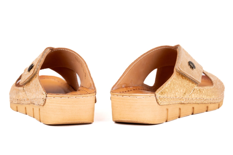 • Klapki są bardzo lekkie a w środku obuwia wyłożone są miękką ,profilowaną wkładką z licowej skóry naturalnej.
