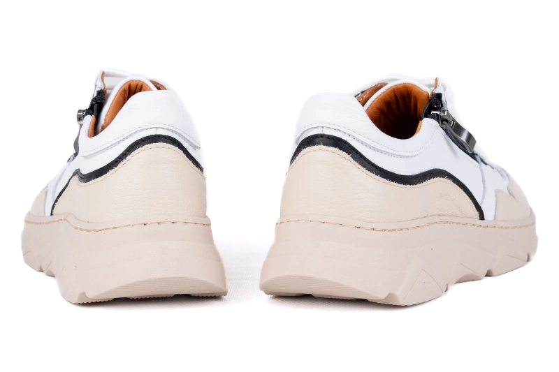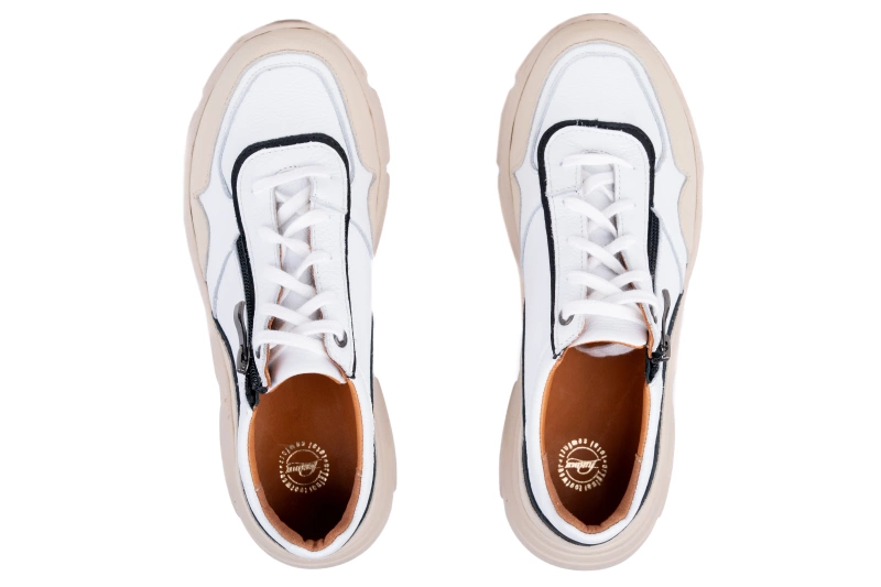 Sneakersy damskie skórzane Łukbut – biało-beżowo-czarne z suwakiem