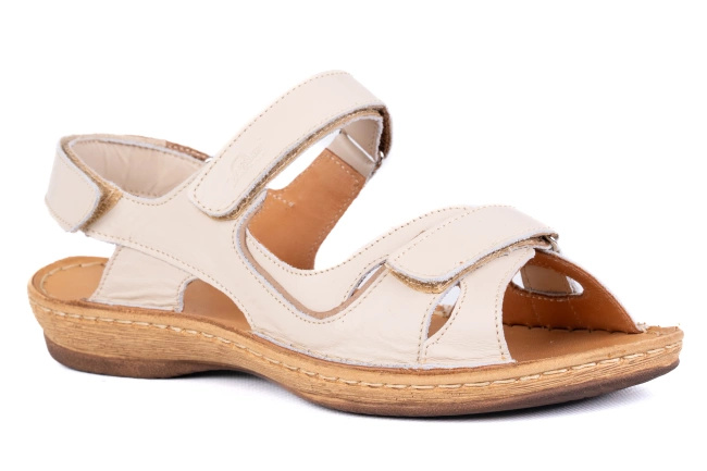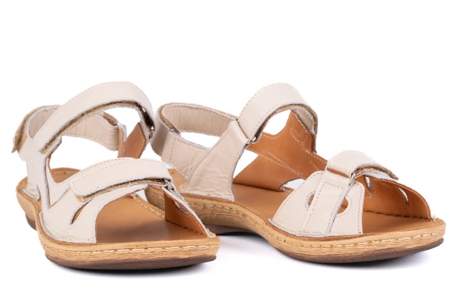 Sportowe sandały damskie na rzepy beżowe Łukbut 6370-3-L-242