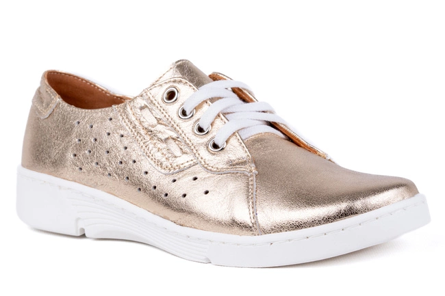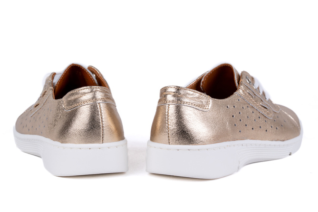 Buty na białej, komfortowej podeszwie w złotym kolorze