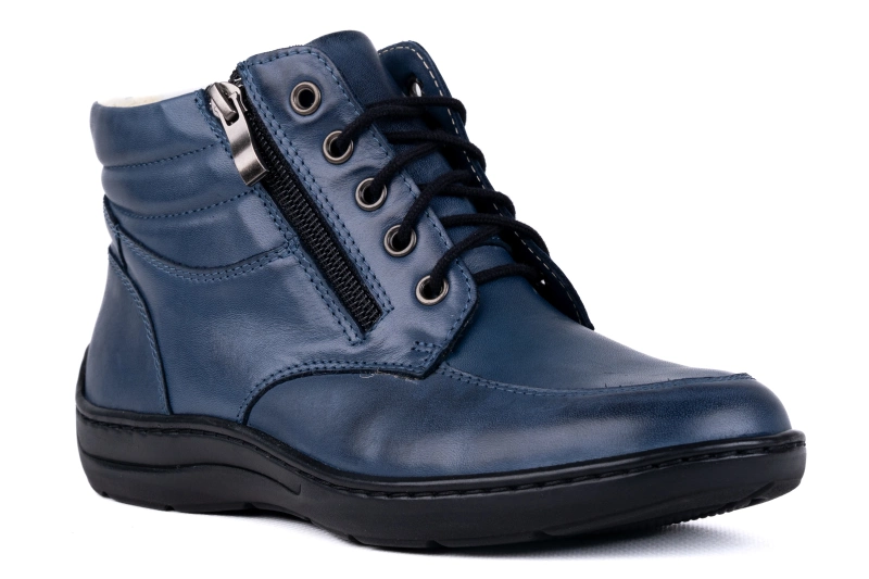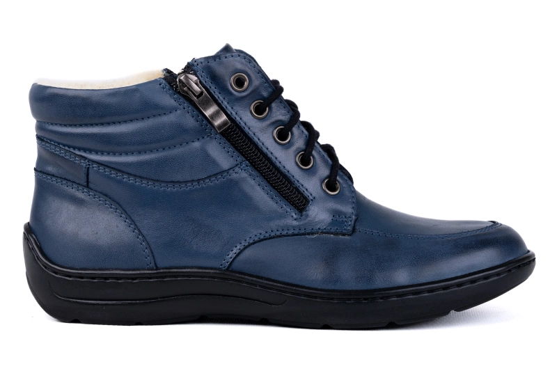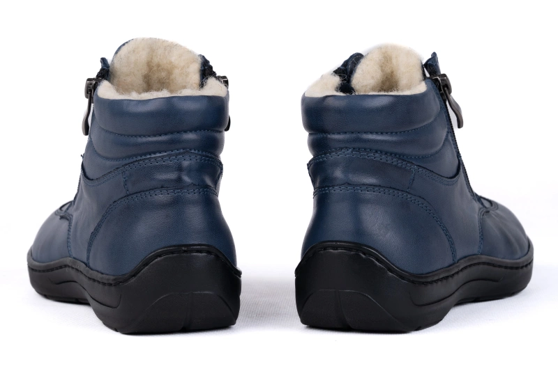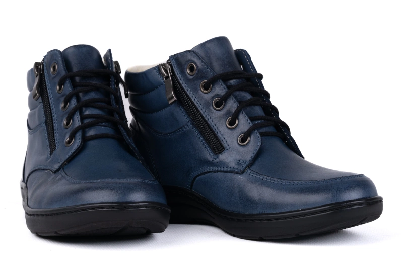 Granatowe trzewiki zimowe damskie ŁUKBUT to połączenie klasyki i funkcjonalności. Dzięki naturalnym materiałom, ociepleniu owczą wełną i wygodnym detalom konstrukcyjnym, stanowią niezawodne obuwie na chłodne zimowe dni.