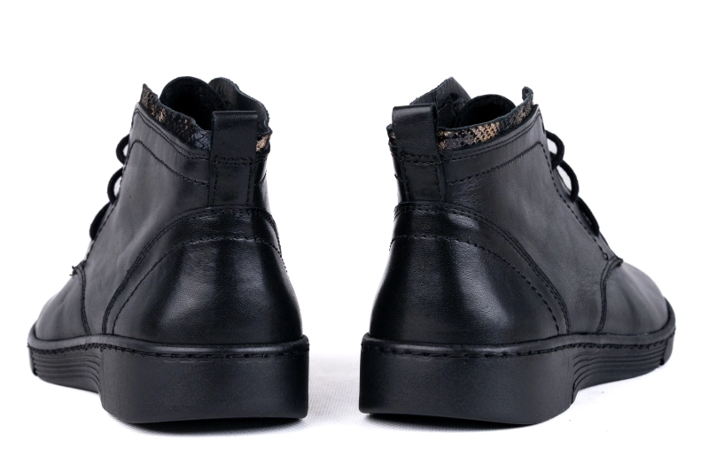 Trzewiki damskie jesienno-zimowe w czarnym kolorze to propozycja dla kobiet, które cenią wygodę, komfort i dobrą jakość. Model wykonany został z miękkiej, naturalnej skóry licowej, która zapewnia trwałość, elastyczność i odpowiednią wentylację stóp. Skóra jest w pełni bezpieczna i antyalergiczna, nie zawiera toksycznych substancji, co czyni buty idealnym wyborem na codzienne użytkowanie. Producent obuwia Łukbut z Łukowa zadbał, aby każda para spełniała wysokie standardy jakości i komfortu, które wyróżniają polską markę Łukbut.