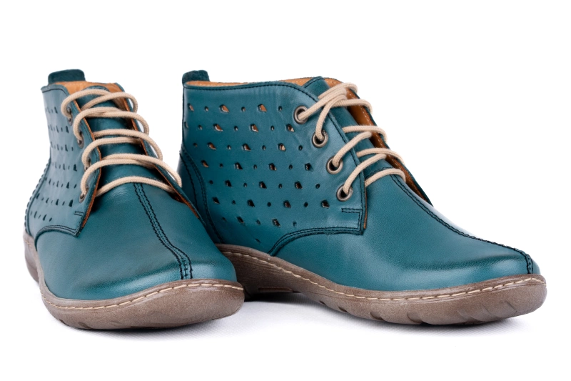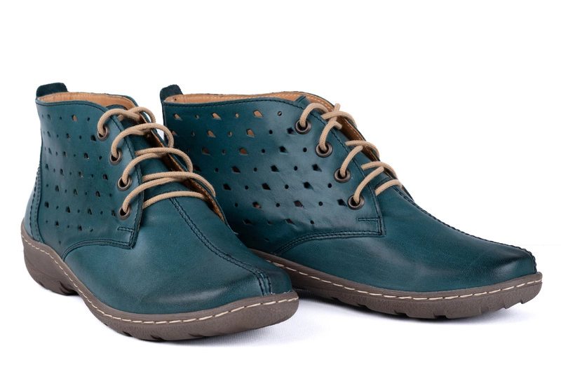 Damskie trzewiki na wiosnę z naturalnej skóry. Miękkie wnętrze oraz najwyższej jakości skóra naturalna gładka, zapewni stopom komfort oraz wygodę w trakcie użytkowania.