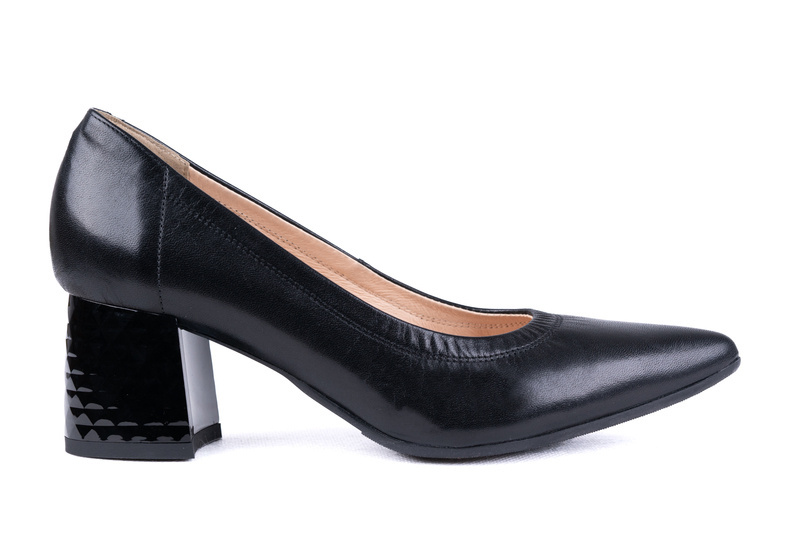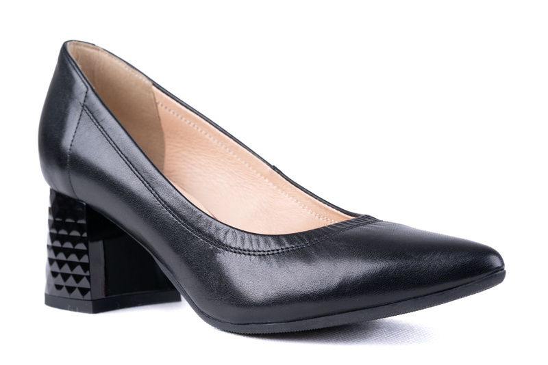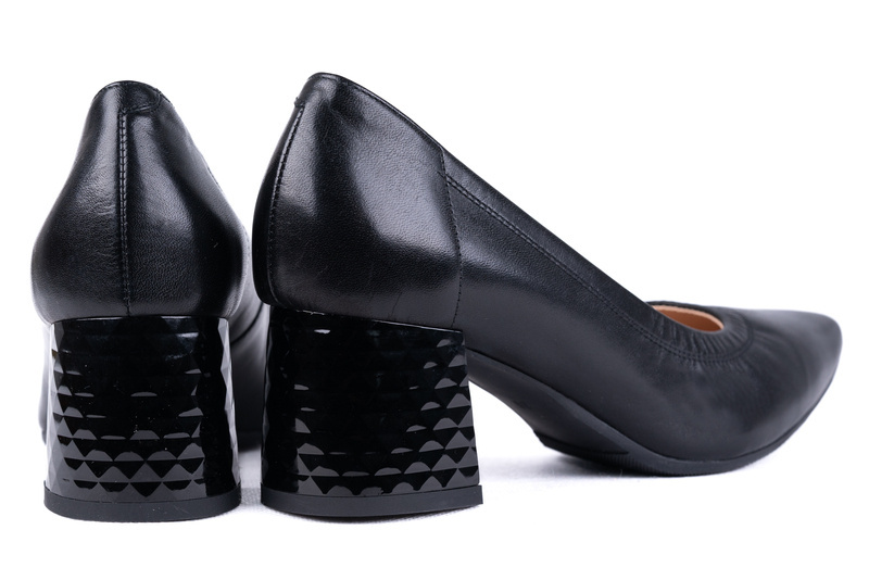 Czarne gładkie czółenka ze zdobionym obcasem 5945